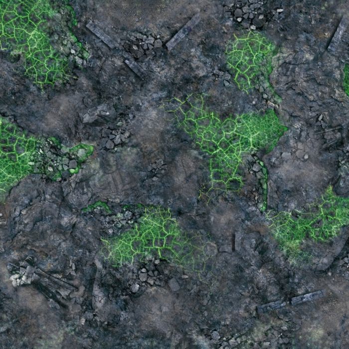 Ziemia pęka pod naporem tajemniczej, zielonej energii, tworząc pole bitwy pełne niebezpieczeństw i strategicznych wyzwań. Mata 36”x36” (91,5x91,5 cm) to idealne tło dla dynamicznych starć w Moonstone i innych grach bitewnych, gdzie skażenie i magia odgrywają kluczową rolę. Szczegółowe odwzorowanie popękanej powierzchni i złowrogiej poświaty buduje klimat, który wzbogaci każdą rozgrywkę. Wybierz wersję gumową, lateksową, antislip lub dwustronną i stań do walki na przeklętej ziemi!