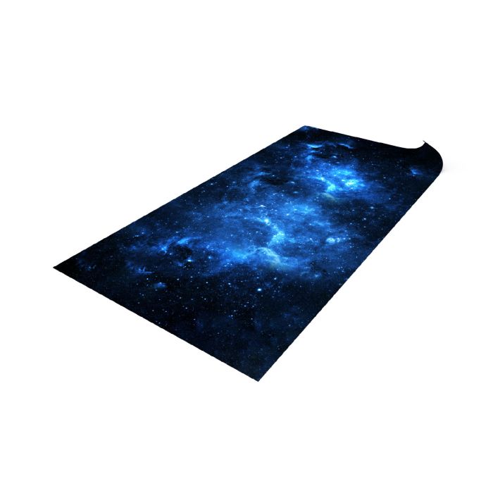 Grafika maty przedstawia mgławicę, w której rodzą się nowe układy planetarne. Jasne odcienie błękitu i bieli otulają ciemną głębię przestrzeni, a delikatne punkty gwiazd tworzą realistyczny obraz kosmosu. To nie tylko mata - to wizualna opowieść, która wzbogaci każdą rozgrywkę.