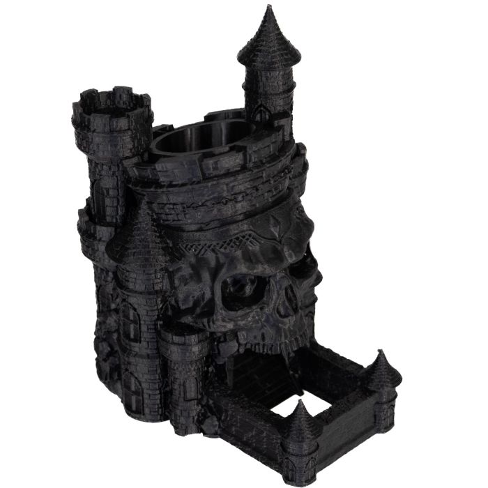Wieża została wykonana przy użyciu nowoczesnej techniki druku 3D, co pozwoliło na uzyskanie niezwykłej precyzji w odwzorowaniu wszystkich detali. Każdy element Fortecy Czaszki, od głęboko rzeźbionej czaszki na froncie po finezyjne wieżyczki, został starannie dopracowany, aby oddać pełnię mrocznego charakteru tej konstrukcji. Z wysokością 20 cm (7,9") i podstawą o wymiarach 13,5 x 10 cm (5,3" x 3,9"), ta wieża jest idealna nie tylko jako funkcjonalne narzędzie do rzucania kośćmi, ale także jako centralny punkt dekoracyjny na stole do gry.
