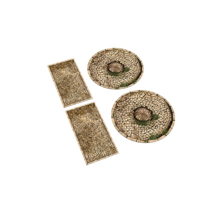 Wysokiej jakości zestaw gumowych terenów 2D z antypoślizgową powierzchnią. Łączy w sobie funkcjonalność klasycznych terenów oraz komfort stawiania na nich figurek.