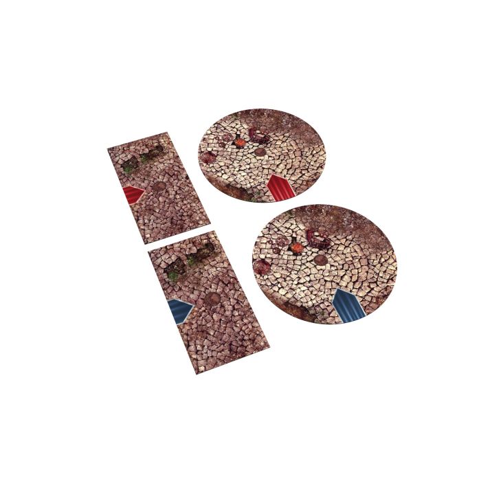 Wysokiej jakości zestaw gumowych terenów 2D z antypoślizgową powierzchnią. Łączy w sobie funkcjonalność klasycznych terenów oraz komfort stawiania na nich figurek.
