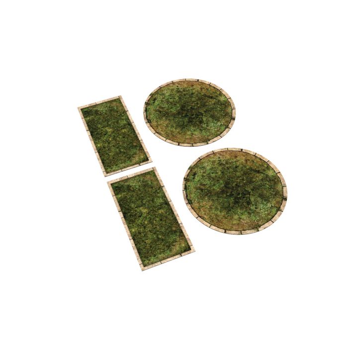 Wysokiej jakości zestaw gumowych terenów 2D z antypoślizgową powierzchnią. Łączy w sobie funkcjonalność klasycznych terenów oraz komfort stawiania na nich figurek.