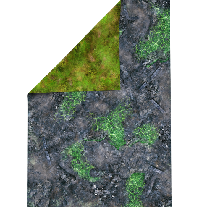 Twoi wojownicy stają naprzeciw ziemi, która nie jest już tylko tłem bitew – pulsuje tajemniczą zieloną energią, jakby żyła własnym życiem. "Zielone Skażone Pole Bitwy" (44”x30” / 112x76 cm) to idealny wybór dla gier takich jak Warhammer: Age of Sigmar Skirmish i The Old World, gdzie spaczenie miesza się z rzeczywistością, a sama ziemia może stać się sprzymierzeńcem lub wrogiem.