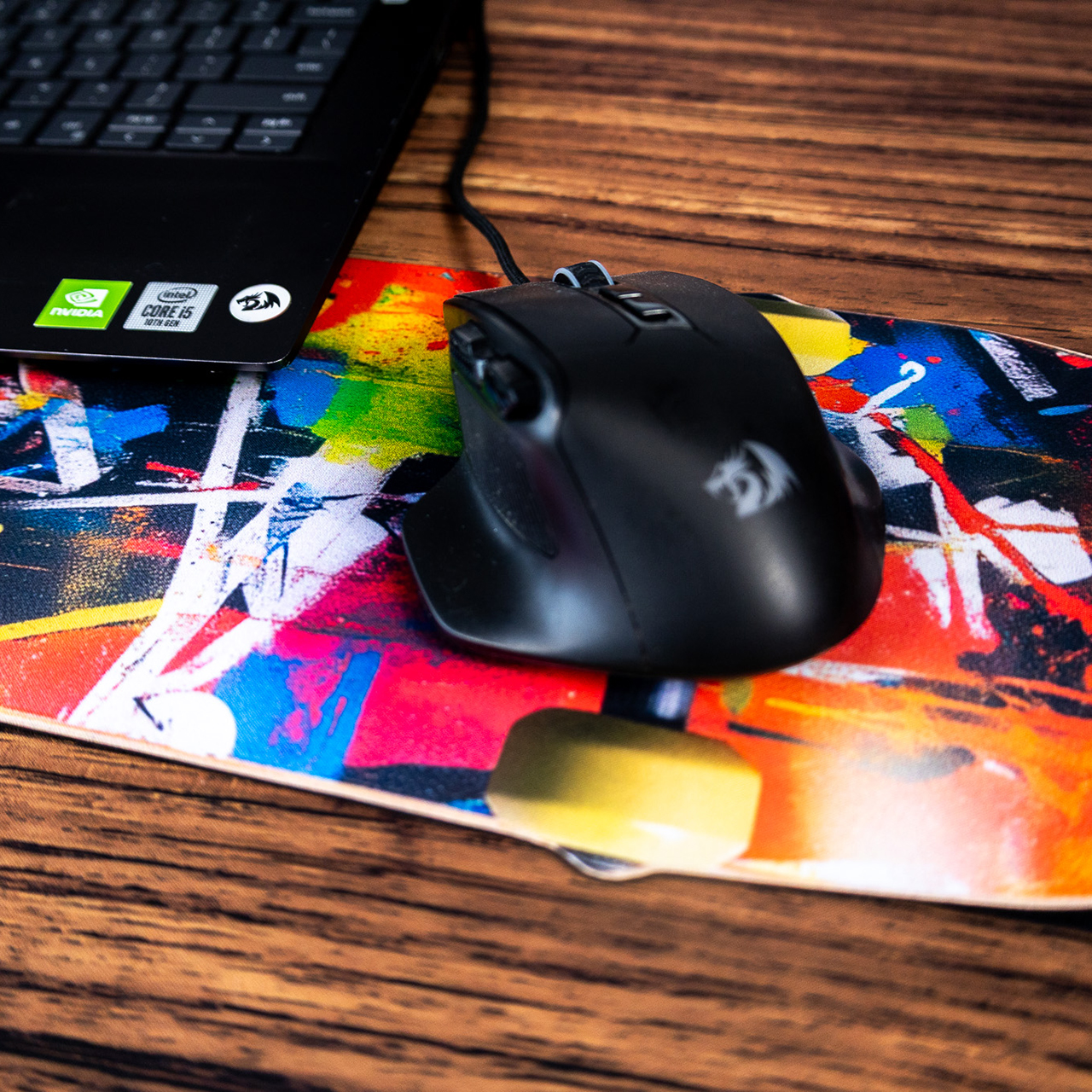 Choć kształt sugeruje użycie biurowe lub e-sportowe, mata ta świetnie odnajduje się w świecie gier bez prądu. Może służyć jako strefa dla Twojego dowódcy w formacie Commander, miejsce na talię i cmentarz lub po prostu jako klimatyczna podkładka do rzucania kośćmi. Dzięki kompaktowym wymiarom zmieści się na zatłoczonym stole, wyznaczając Twoją prywatną strefę gry. Energetyczne kolory sprawiają, że nawet prosta rozgrywka nabiera dynamiki, a Ty zyskujesz komfort oparcia nadgarstków na miękkim podłożu zamiast na twardym blacie.