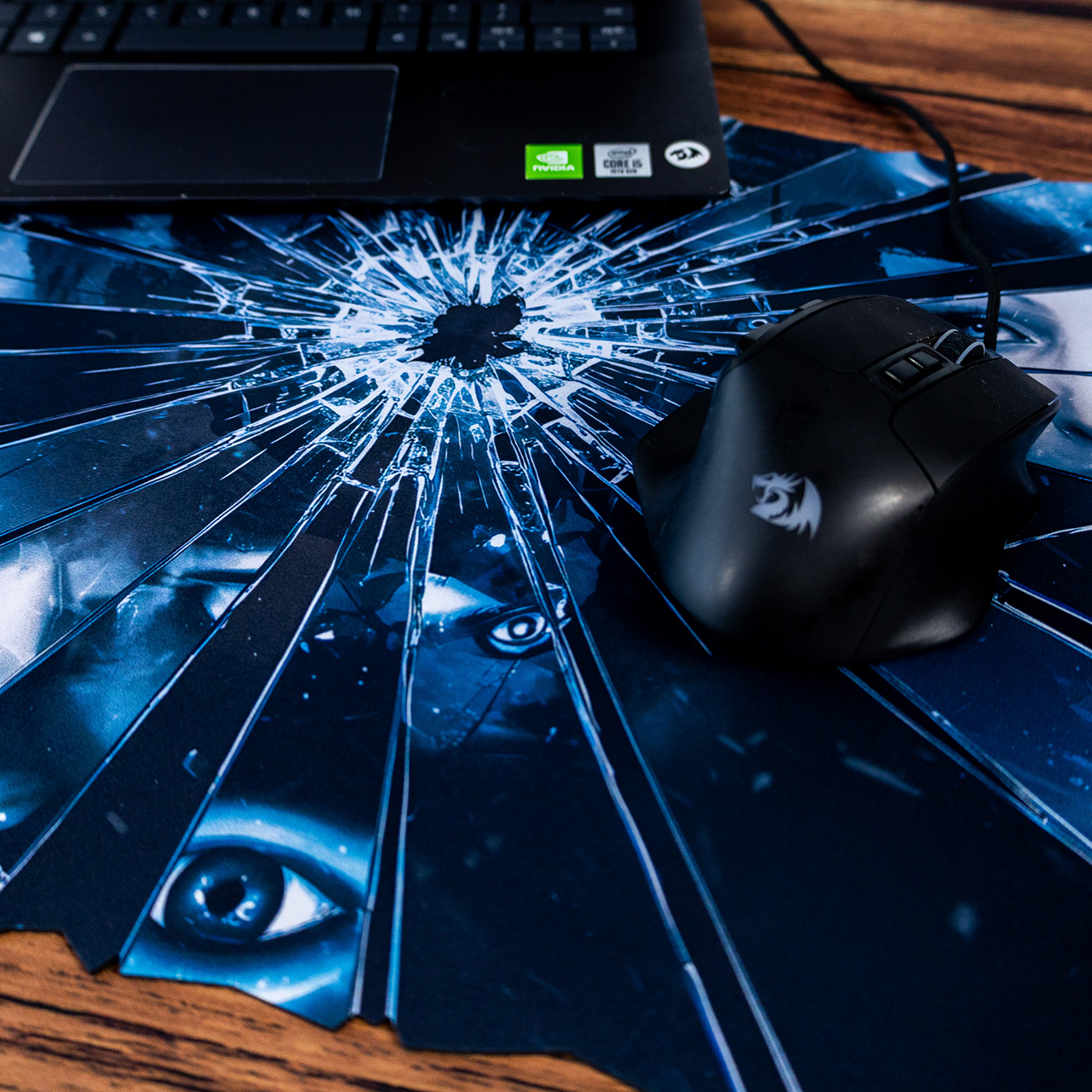 W świecie gier często balansujemy na krawędzi szaleństwa, szczególnie gdy stajemy naprzeciw przedwiecznych potworów lub zagłębiamy się w mroczne zakamarki ludzkiej psychiki. Mata Strzaskana Jaźń została zaprojektowana, aby oddać ten moment, w którym rzeczywistość zaczyna się kruszyć. To nie jest zwykła, prostokątna podkładka, lecz fragment zniszczonego lustra, w którego odłamkach dostrzegasz niepokojące spojrzenie. Nieregularne, poszarpane krawędzie maty (die-cut) sprawiają, że produkt ten wygląda jakby został wyrwany prosto z miejsca zbrodni lub nawiedzonego domu, co natychmiast buduje niesamowitą atmosferę na Twoim stole.