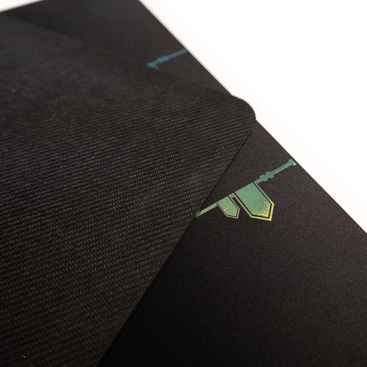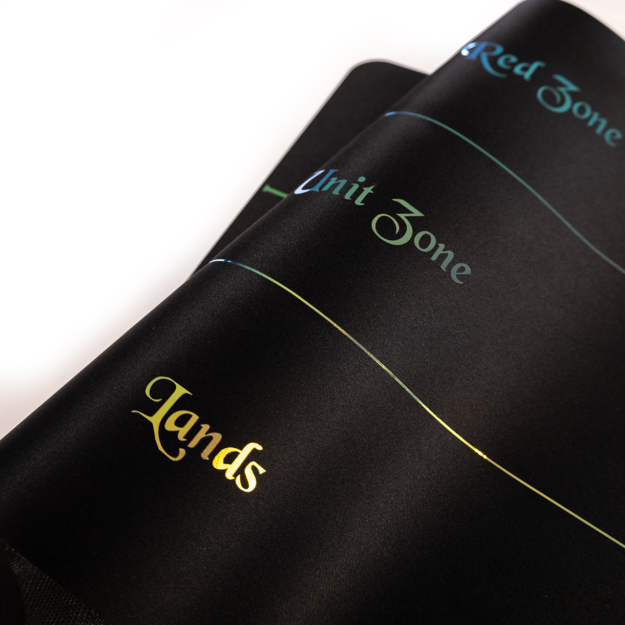 Zastosowana technologia hot-stampingu (termodruku) gwarantuje, że holograficzne linie są trwale wgrzane w materiał. Nie jest to zwykły nadruk, który z czasem wyblaknie. Folia jest odporna na ścieranie podczas tasowania czy przesuwania kart, zachowując swój blask przez wiele turniejów. Podstawą maty jest wysokogatunkowa guma neoprenowa o grubości 2 mm. Zapewnia ona doskonałą przyczepność do blatu, dzięki czemu mata nie przesuwa się nawet podczas najbardziej dynamicznych momentów gry. Wierzchnia warstwa to gładki poliester, który jest niezwykle delikatny dla kart i koszulek, chroniąc je przed zarysowaniami.