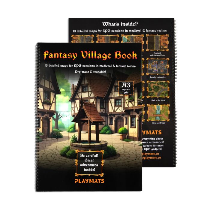 Przenieś swoją drużynę prosto do serca fantastycznej wioski, pełnej tajemniczych zaułków, tętniących życiem karczm i niepokojących lochów. Księga RPG Wioska Fantasy to aż 18 szczegółowych map taktycznych w formacie A3, zaprojektowanych z myślą o sesjach RPG osadzonych w klimatach średniowiecznych i fantasy.
