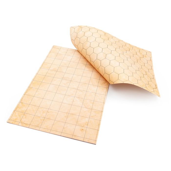 Notatnik A4 z wyrywanymi kartkami zawierającymi siatkę bitewną po obu stronach (kwadratowa i heksagonalna). Kartki wyglądem przypominają papyrus, który nadaje im wrażenie starej mapy pozwalając na zwiększoną immersję przy rysowaniu map i planów działań podczas rozgrywki. Taki notatnik idealnie nadaje się jako dodatek do krótkich kampanii RPG oraz kart postaci.