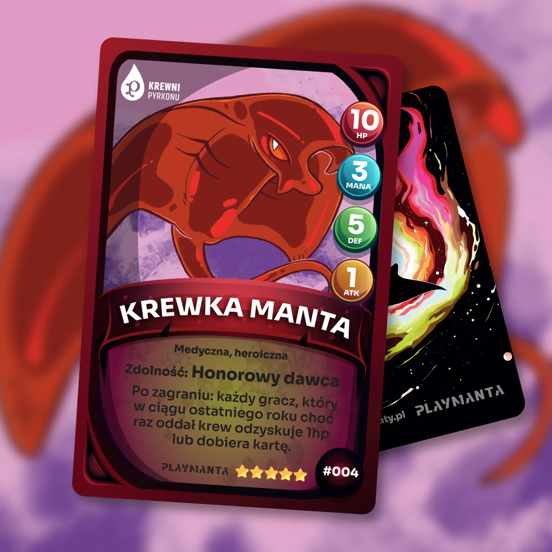 Po zagraniu: każdy gracz, który w ciągu ostatniego roku choć raz oddał krew odzyskuje 1hp lub dobiera kartę.