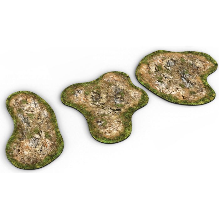 Wysokiej jakości zestaw gumowych terenów 2D z antypoślizgową powierzchnią. Łączy w sobie funkcjonalność klasycznych terenów oraz komfort stawiania na nich figurek.