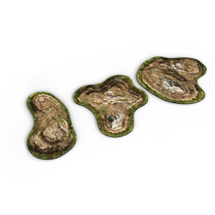 Wysokiej jakości zestaw gumowych terenów 2D z antypoślizgową powierzchnią. Łączy w sobie funkcjonalność klasycznych terenów oraz komfort stawiania na nich figurek.